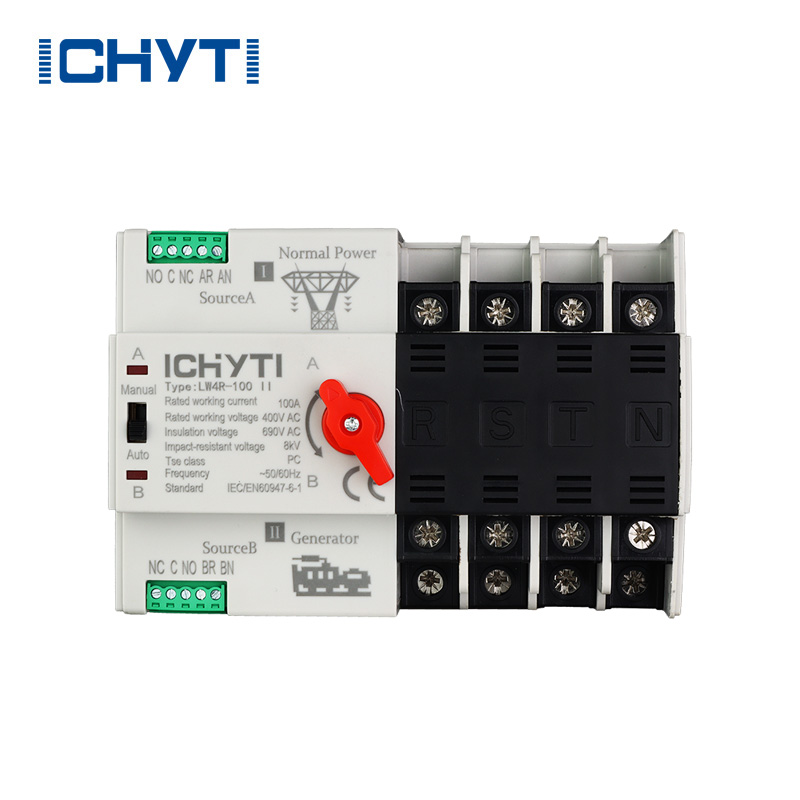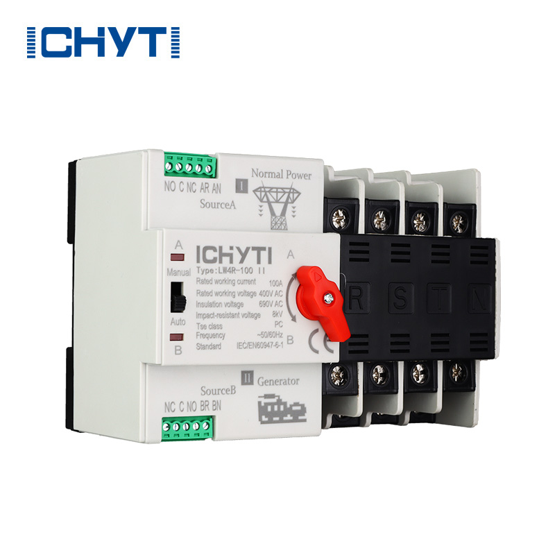 Kitajska tovarna ICHYTI Veleprodajni nakup s popustom enofazno samodejno preklopno stikalo ima tri preklopne funkcije v napajalnem sistemu trifaznega štirižilnega električnega omrežja, vključno s samodejnim preklopom napajanja v stanju pripravljenosti, rezervnega napajanja ter električnega omrežja in generatorja. Lahko zazna efektivno vrednost trifazne napetosti in efektivno vrednost fazne napetosti ter fazo dveh virov napajanja v realnem času in samodejno preklopi z neobičajnih virov napajanja na običajne vire napajanja v primeru prenapetosti, prenizke napetosti ali izgube faze v kateri koli fazi.